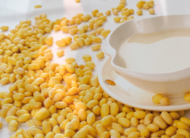 以富硒黃豆為原料,經(jīng)過(guò)配料、去雜、選粒、拋光、磁力選別、壓榨、豆餅破碎、磨粉、旋···